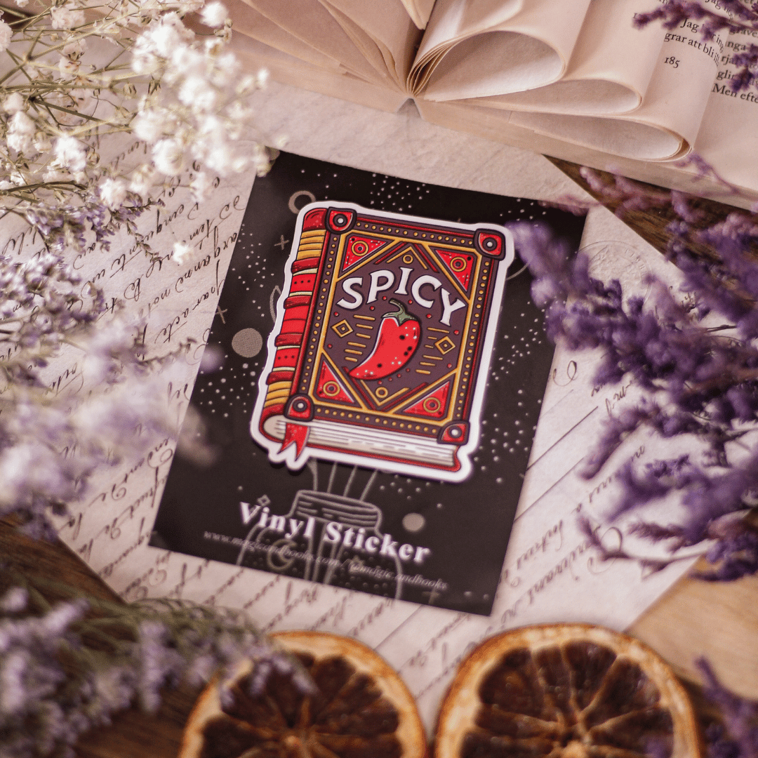 “Spicy” sticker is for readers who love books with extra heat, chemistry, and blush-worthy chapters. Add it to your laptop, Kindle, or notebook for a fun and fiery touch that tells the world you enjoy your romance on the hotter side. The perfect little statement piece for romance and romantasy fans who like their stories spicy.